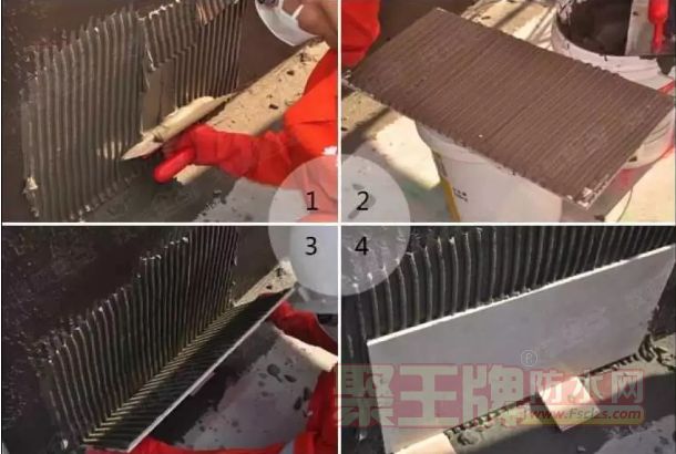 用齿形刮板将胶浆抹于瓷砖背面上,使之均匀分布,每次约抹1㎡左右,然后将瓷砖揉压上即可。若要达到*佳效果,则只需在工作墙面上均匀抹1㎡左右,使两者的齿纹十字交叉,最后压砖就可以了。