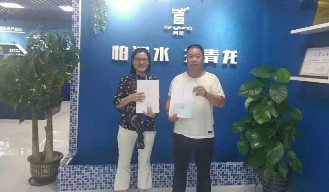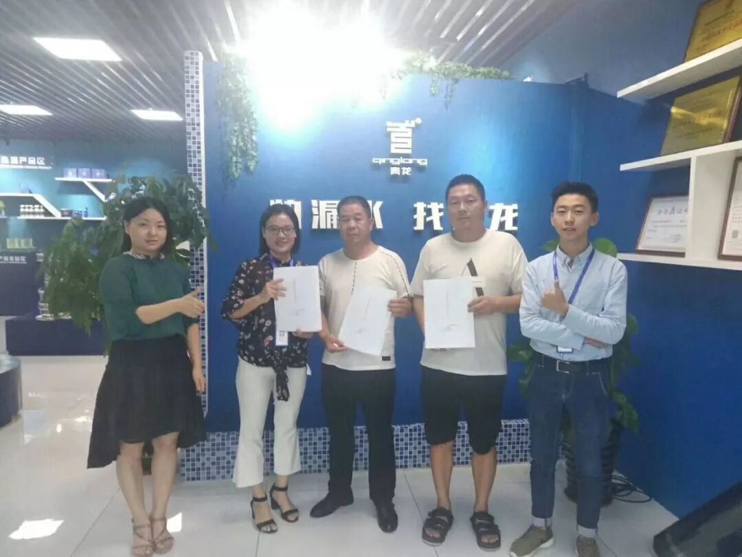 经过前期接触沟通、现场探讨交流和亲自测试,两位老总一致认为青龙的特色补漏产品和新营销模式正是他们一直在苦苦寻觅的利器,还表示现在不拿下独*代理权,以后只能做分销了,遂果断签约成为青龙鲁山县、温县家装防水代理商。
