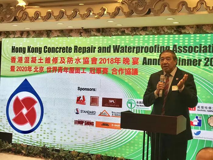 9月13日,值香港混凝土维修及防水协会(以下简称HKCRWA)2018年会及成立第三十二周年纪念晚宴之际,两岸四地(中国大陆、中国香港、中国澳门、中国台湾)防水协会及相关领域领导人、嘉宾在香港九龙新港中心济济一堂,就分别组团参加2020年北京第28届世界青年屋面工*军赛等事宜达成共识。