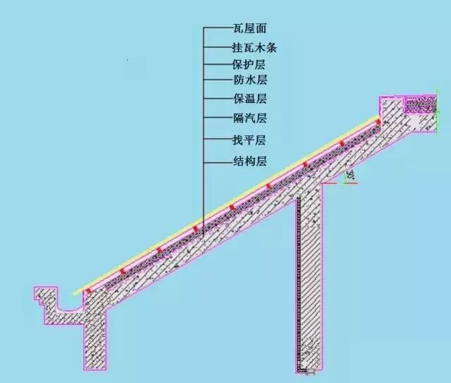 对于坡屋面而言,做法基本是相同的,不过是将最上面那层保护层或面层换成瓦屋面而已。