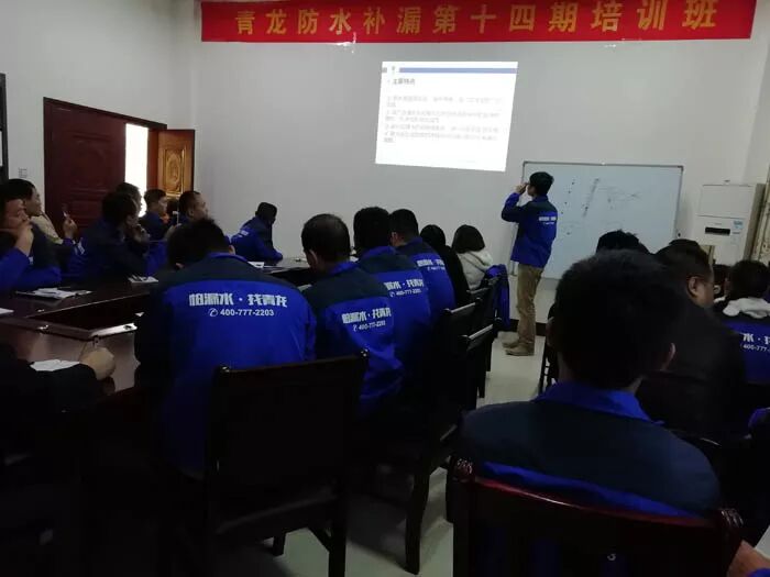 督导部长谢鹏辉讲解了青龙培训体系、后期服务等,消除了大家对防水技能不足开拓的顾虑,提升市场信心。