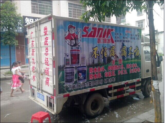宣传形象:户外广告 新力防水湖南娄底总代理车身广告