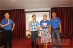 (汤董与代理刘国威,徐宝珠合影并授予现金奖励)