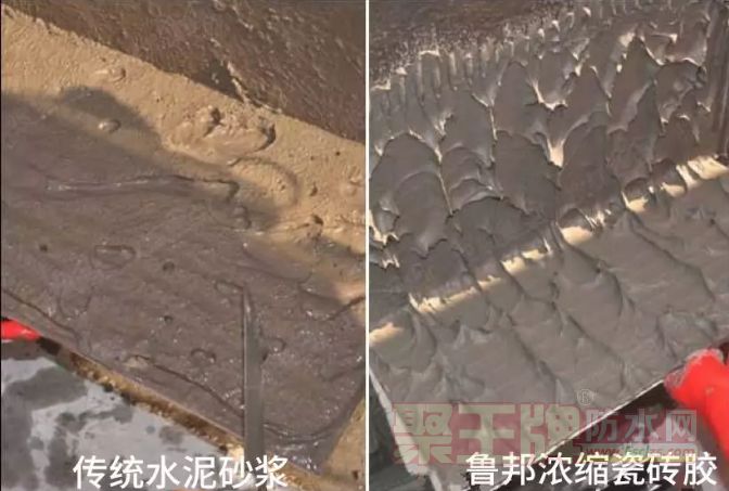 传统水泥砂浆:必须用厚贴法,无形中耗费了过多材料,太厚的粘接层还容易引起水泥收缩导致空鼓掉砖;
