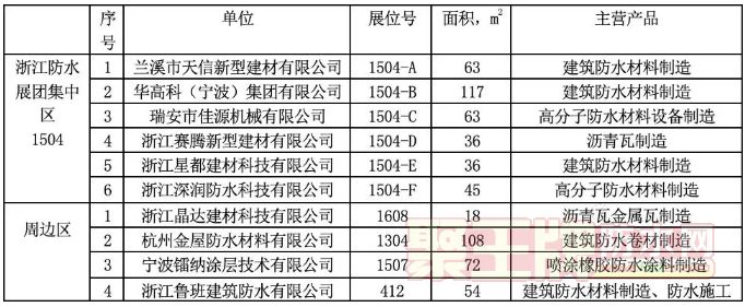 浙江省建筑防水行业协会秘书长洪晓苗表示,浙江协会组织会员采用集中参展和单独布展相结合的方式参加交流,集中展区在1504号,本次共10家会员参展,加上周边的单独展位共计702平方米展区,创历年之最,显示了浙江防水企业良好的发展动态,届时欢迎大家参与交流指导。
