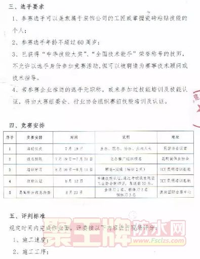 每家装饰企推选1组参赛选手(包含一名大工及一名辅助)。