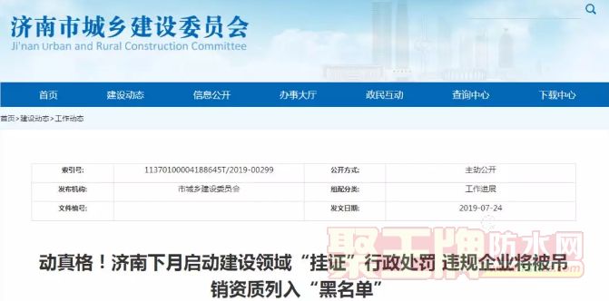 7月24日,济南市住建委发布工作动态——《动真格!济南下月启动建设领域“挂证”行政处罚违规企业将被吊销资质列入“黑名单”》。