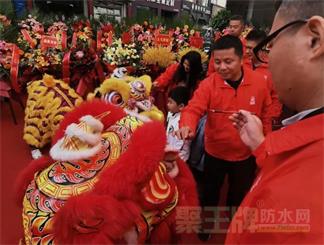 公司董事长王总为舞狮点睛,一点左眼——生意兴隆。二点右眼——财源广进。三点天灵——前程似锦。接着是采青仪式,舞狮采青寓意瑞气临门,生财有道,步步高升,“青”是由舞狮队员提前挂在大门口或者是舞台上,由生菜和红包组成,生菜是“生财”的谐音,狮子采到“青”后,把“青”抛给“指定的领导或嘉宾”,接“青”也表示接到了财运,舞狮接到财后要回礼:回礼就是把预先准备好的红包给狮子,寓意开张大吉,生意兴隆。