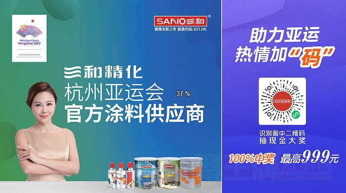 2022年3月18日,香港主板上市公司三和精化集团有限公司(股票代码:301.HK)官宣,正式成为“杭州亚运会官方涂料供应商”。