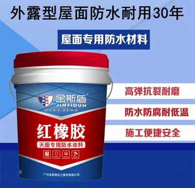 金斯盾红橡胶防水是以橡胶乳液为基料,配以高档进口树脂乳液、助剂及填充料精制而成的一款橡胶防水补漏涂料。它具有优异的粘性和弹性功能, 环保无污染、单组份易施工。施工完成后更不容易因天面昼夜温差变化导致材料开裂,因此补漏效果更持久性,可应用于天面、地下室、隧道、外墙 及金属屋面等场景的防水处理。