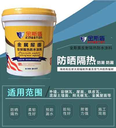 金斯盾金属屋面反射隔热防水涂料是由导热系数极低的空心微珠绝热材料,具有高效降温、薄层、装饰、自洁、防水、防潮、防紫外线 老化、耐酸碱、防腐于一体的新型常温降温节能长寿命涂料。