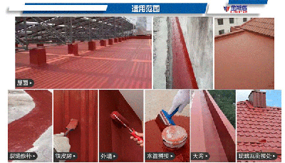 混凝土屋面、金属屋面、琉璃瓦屋面。天面、地下室、楼地面、停车场、外墙、隧道及金属屋面的防水处理、维修补漏等;亦可用于聚氨酯、卷材裂缝上的防 水维修。