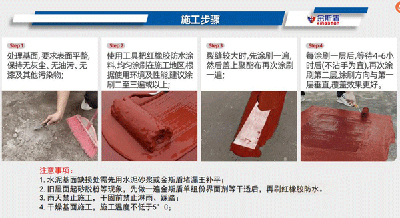 1.施工时气温应在5℃-40℃之间,大风或雨雪天禁止施工;不宜在特别潮湿又不通风的环境中施工,否则影响成膜效果。 有明水、渗漏的部位应先预先处理好后才能施工。